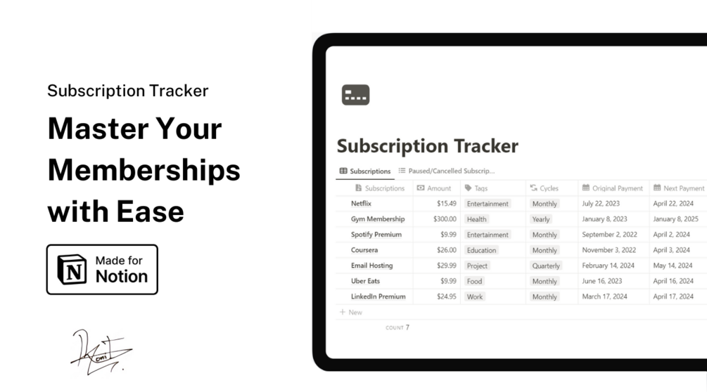 Take control of your subscriptions with this comprehensive Notion Subscription Tracker template.