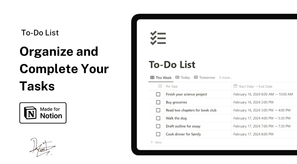 - Automatically sorted - The template will then instantly categorize each to-do into Today, Tomorrow, Completed, and Overdue lists. No manual sorting needed!